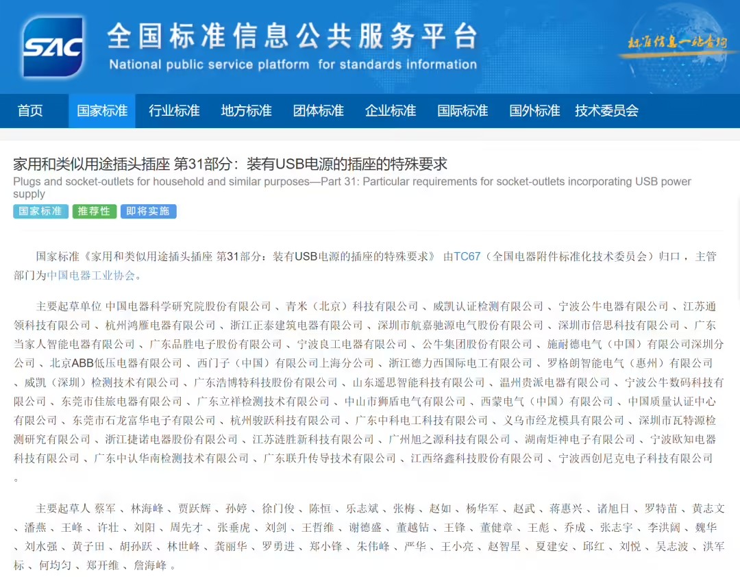 GB/T 2099.31-2025《家用和類似用途插頭插座 第 31 部分:裝有 USB 電源的插座的特殊要求》作為 GB / T 2099 標準新增內(nèi)容,針對集成 USB 接口插座制定了專項技術規(guī)范。